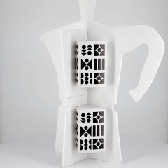 Ideale come regalo per Natale o per altre occasioni speciali, questa moka stilizzata non è solo bella da vedere, ma anche funzionale. Dopo aver gustato i nostri caffè artigianali, la moka rimane come un elegante complemento d'arredo per la casa, l'ufficio o locali commerciali, mantenendo vivo lo spirito del caffè in ogni ambiente.