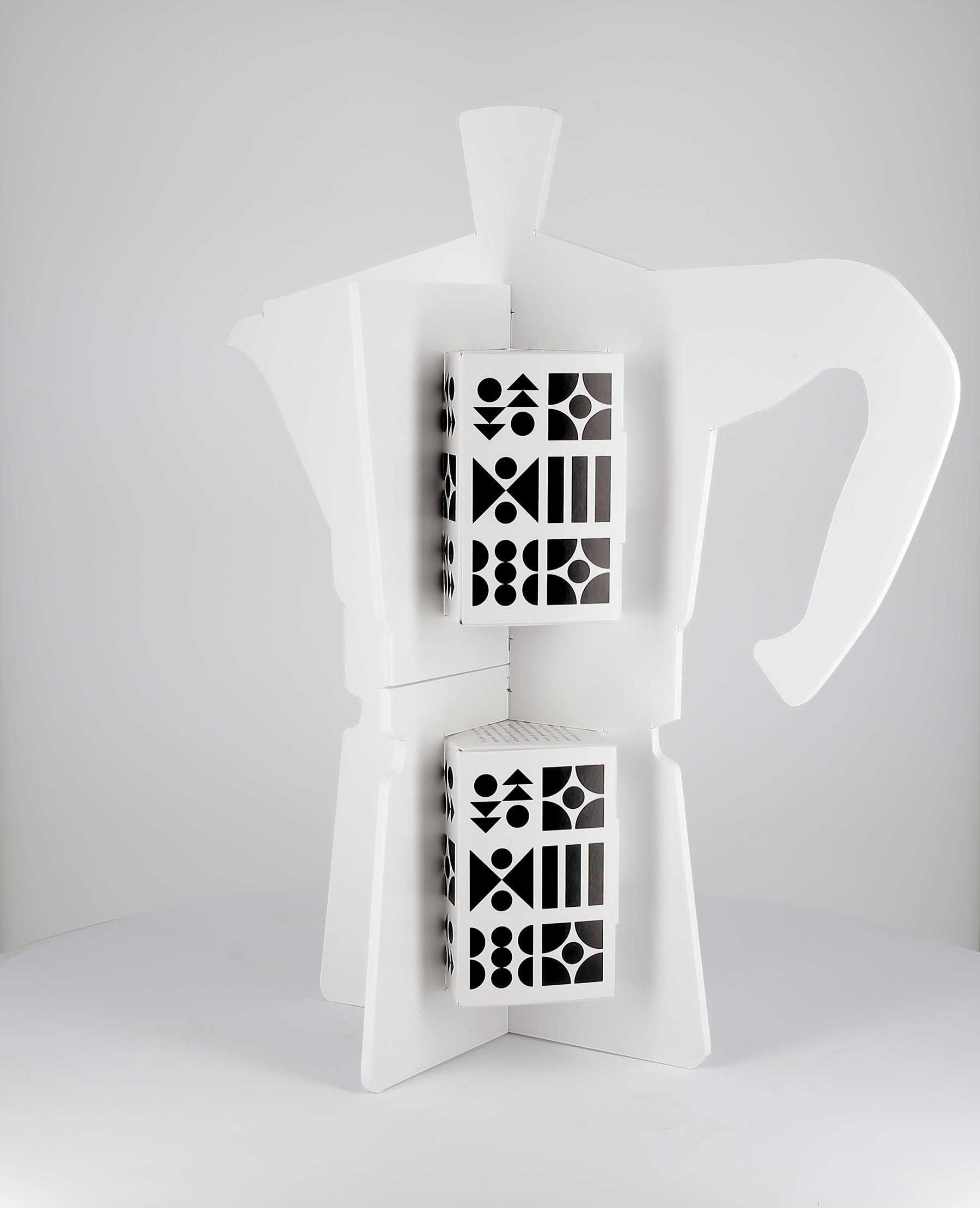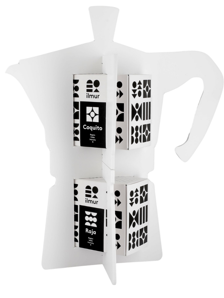 Per un vero amante del caffè, non c’è regalo migliore! La nostra moka stilizzata "Ilmur", realizzata in forex, non solo è un pezzo di design unico e accattivante, ma è anche il contenitore perfetto per due confezioni da 250g di macinato moka della nostra torrefazione artigianale di Verona. Puoi personalizzare la composizione dei caffè a tuo piacimento, scegliendo tra le nostre miscele più amate come Raja o Coquito.