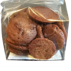 Farina di GRANO tenero tipo 0, Gocce di cioccolato fondente (20%), BURRO fresco italiano, UOVA fresche, Zucchero di canna, Pasta di cacao Hispaniola della Repubblica Dominicana (4%), Cacao in polvere.