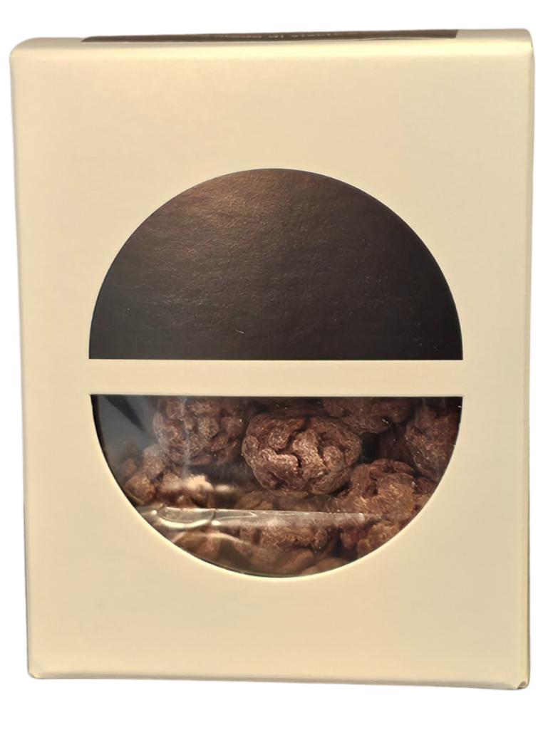 Un incontro audace tra chicchi di caffè arabica selezionati, cioccolato fondente 85% e un tocco di sale rosa dell’Himalaya.