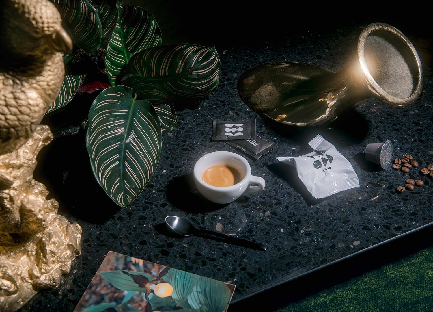 Miscela di caffe 100% arabica torrefatto, macinato e confezionato in atmosfera protettiva in capsule monodose. Prodotto nello stabilimento di Bagnolo in Piano (RE), 42011, Via Ferraris, 5-5A