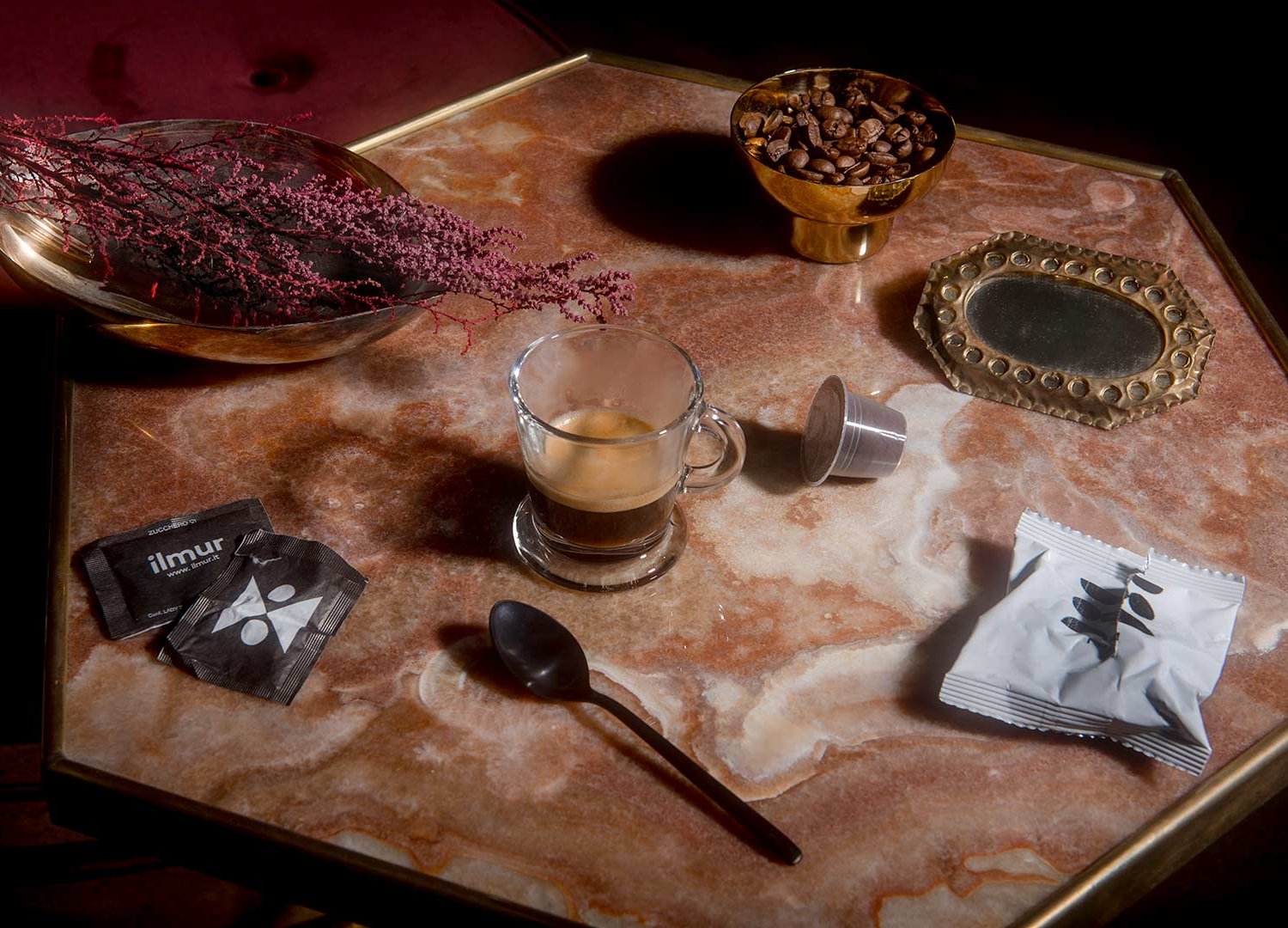 Miscela di caffe 100% arabica torrefatto, macinato e confezionato in atmosfera protettiva in capsule monodose. Prodotto nello stabilimento di Bagnolo in Piano (RE), 42011, Via Ferraris, 5-5A
