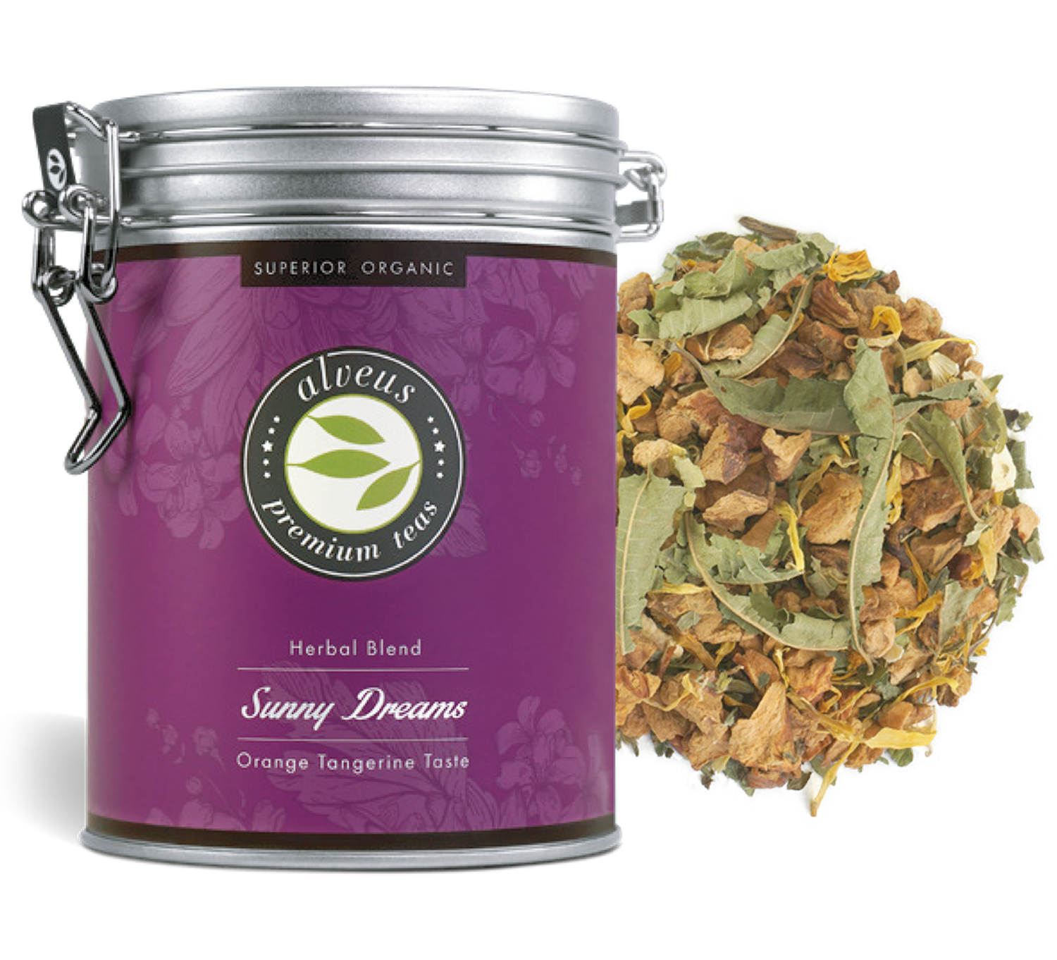 Ingredienti: Mela*, verbena intera*, melissa*, aroma naturale di arancia, scorza d‘arancia*, erba Tulsi*, calendula*, Olio di mandarino*, fiori di luppolo* , alchemilla*, valeriana*, santoreggia*.
